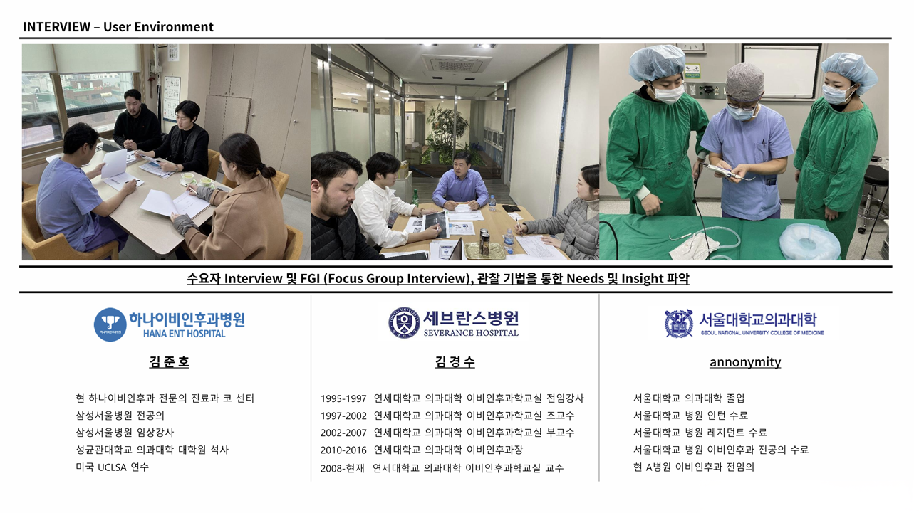 부비동염 치료기기 개발 디자인 과정은 철저한 사용자 중심 접근 방식으로 진행되었습니다. 프로젝트의 첫 단계는 수술실 환경에 대한 깊은 이해에서 시작되었습니다.