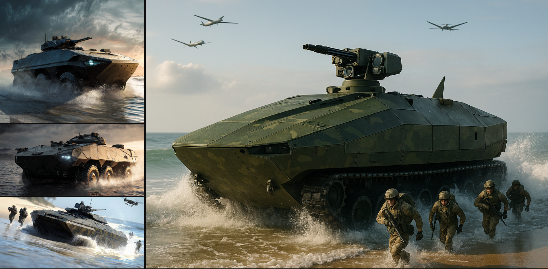 고스디자인이 설정한 수륙 양용 장갑차 개념은 다음과 같습니다.